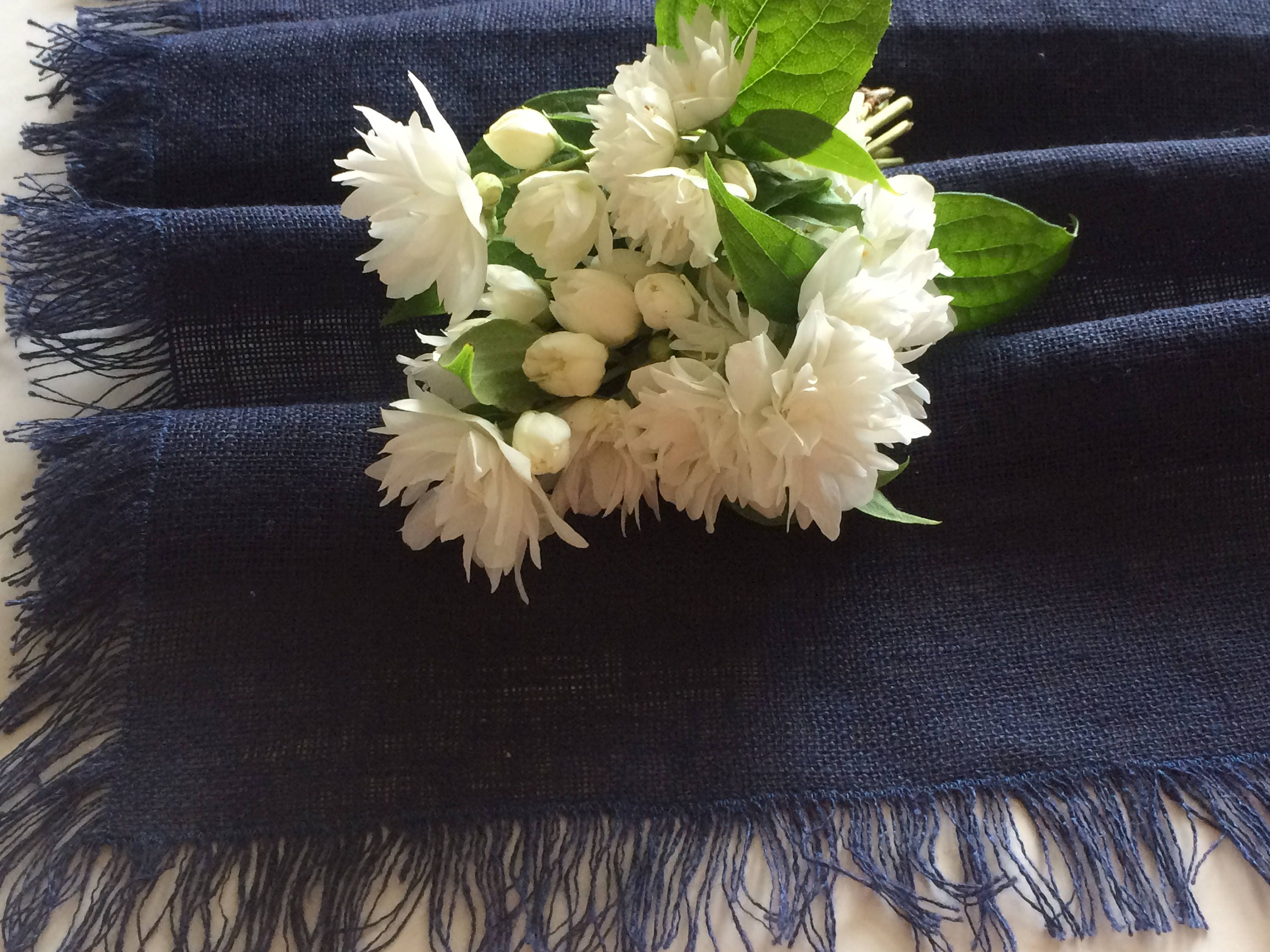Beautiful and simple design natural linen tablecloth. The tablecloth is in dark blue color with fringed edges on all sides to ensure a modern and stylish atmosphere. Hand-made from 100% pure high quality European linen.